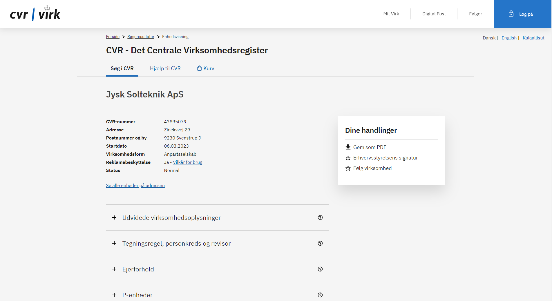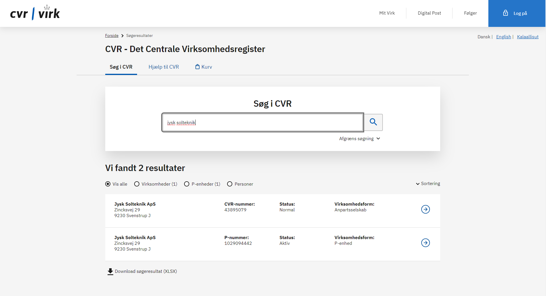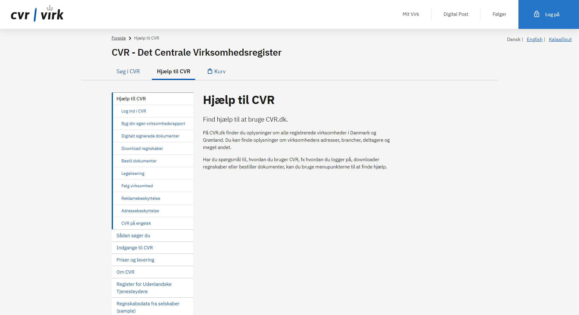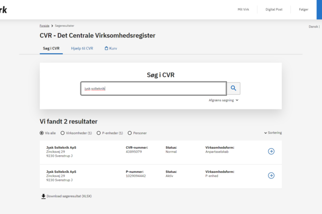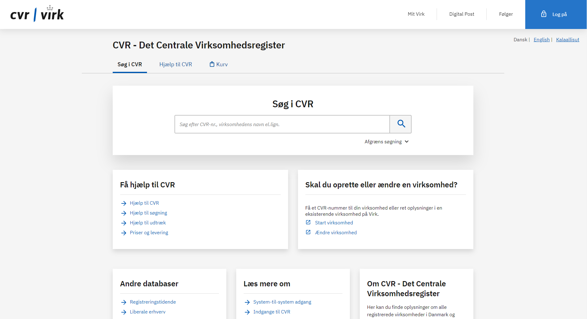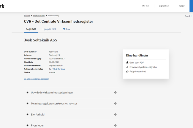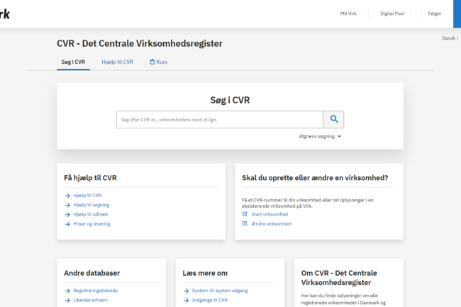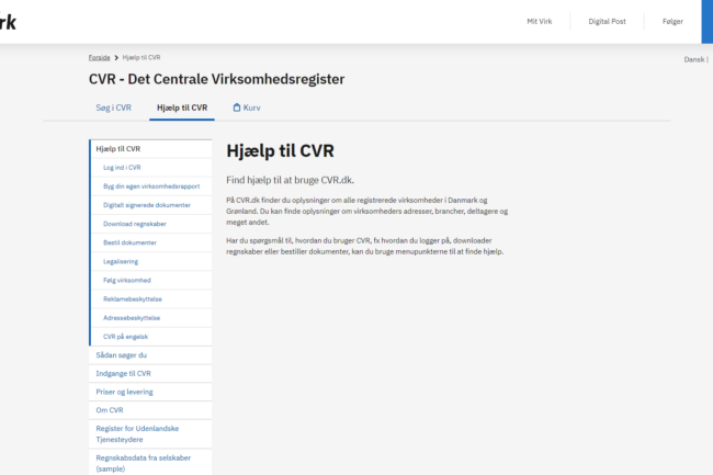A central registry managed by the Danish Business Authority (Erhvervsstyrelsen) that contains information about businesses and other entities operating in Denmark.
